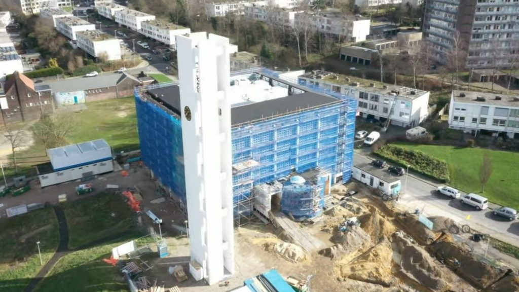 Voor het zover is moeten de bouwvakkers nog een hoop werk verzetten! Intern zijn de voorbereidingen voor de verhuizing in volle gang. Ook aan het pand zelf is men wordt nog volop aan het werk. Dat blijkt ook uit de dronebeelden van de Christus Koningkerk in Heerlerheide. Deze werden twee weken geleden van het pand gemaakt. Op YouTube kunt u zelf zien wat de stand van zaken is.