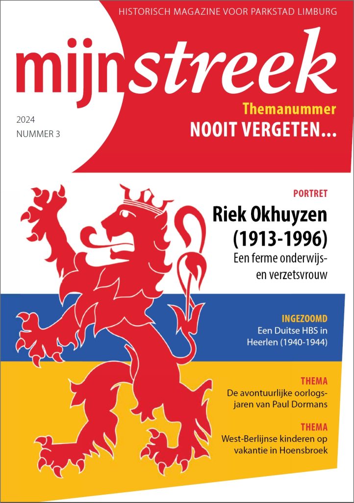 Deze week viel bij onze abonnees het derde nummer van 2024 van MijnStreek in de brievenbus. Het is weer een bijzonder themanummer geworden, dit keer met artikelen over geschiedenissen rondom de Tweede Wereldoorlog en ƩƩn verhaal over een Heerlense broeder die in de Eerste Wereldoorlog is omgekomen. Voor abonnees zat er als cadeau ons 32 pagina’s tellende Historisch Cahier Parkstad Limburg nummer 4 bij. Marcel Krutzen tekende voor de inhoud ervan, een biografie over communist, hulpverlener en verzetsheld Otto Schumacher (1908-1988).
