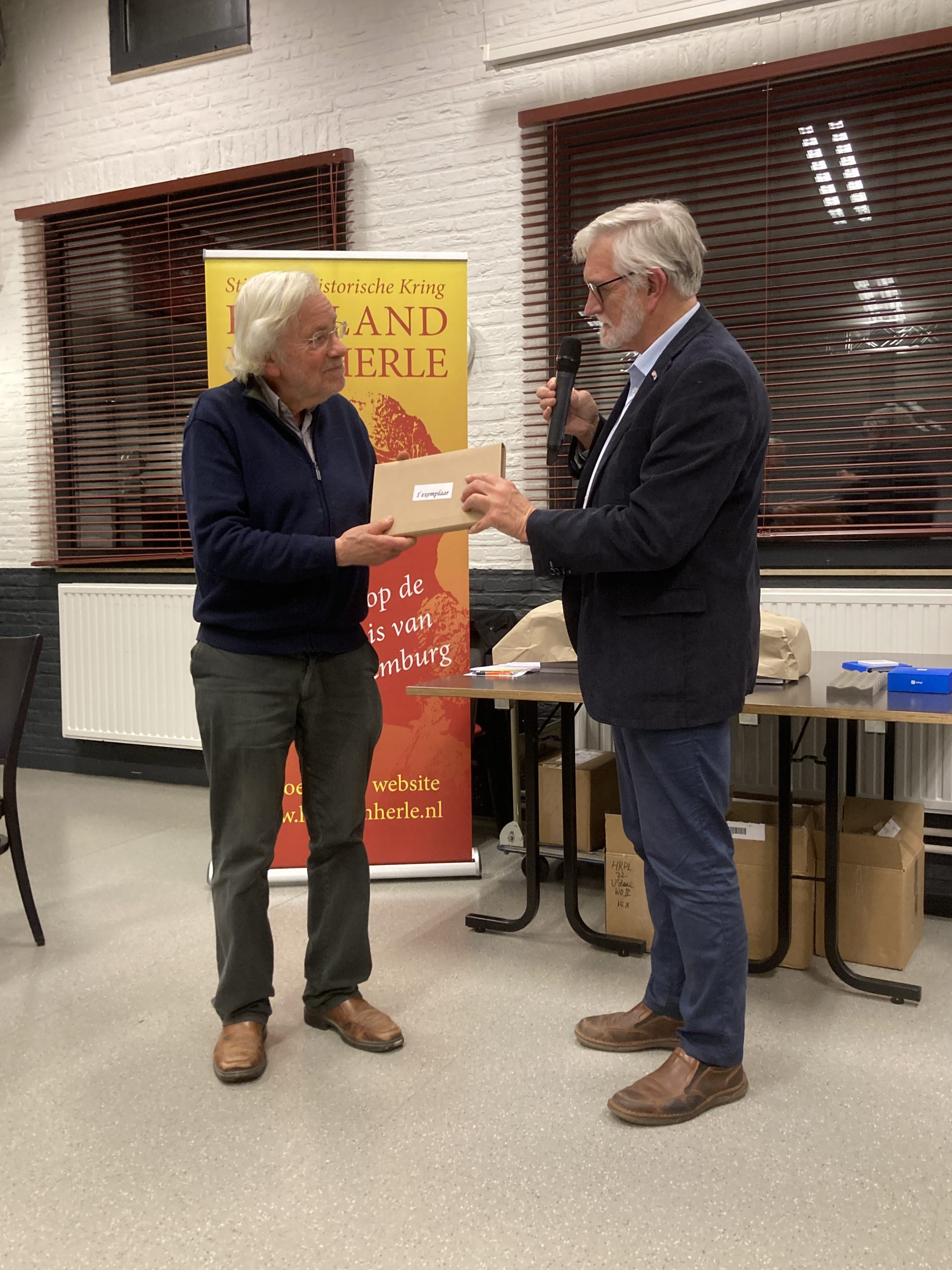 Na een korte pauze was het tijd voor de presentatie van het boek. Het eerste exemplaar werd aan Frans overhandigd door Roelof Braad, hoofdredacteur van MijnStreek, Historisch Magazine voor Parkstad Limburg en oud-stadhistoricus van Heerlen.