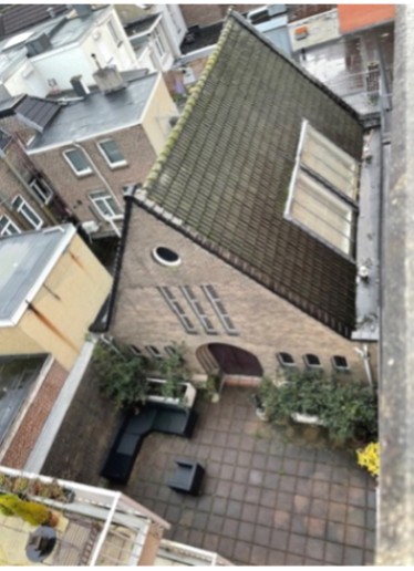 De Synagoge van Heerlen, gefotografeerd vanaf het dak van de parkeergarage van het Corio Center.