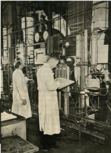 Semitechnische modelapparatuur voor katalyse-onderzoek in het Centraal Laboratorium in 1952 (Bron: Collectie Staatsmijnen)