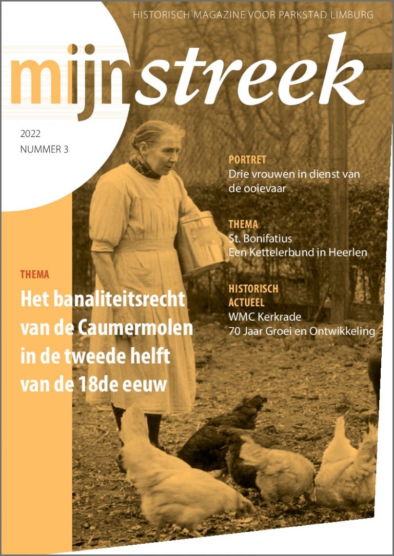 MijnStreek 2022-3 heeft weer een aantal boeiende artikelen, zoals 'Drie vrouwen in dienst van de ooievaar', 70 jaar WMC in Kerkrade, het Banaliteitsrecht van de Caumermolen en een biografie van ...